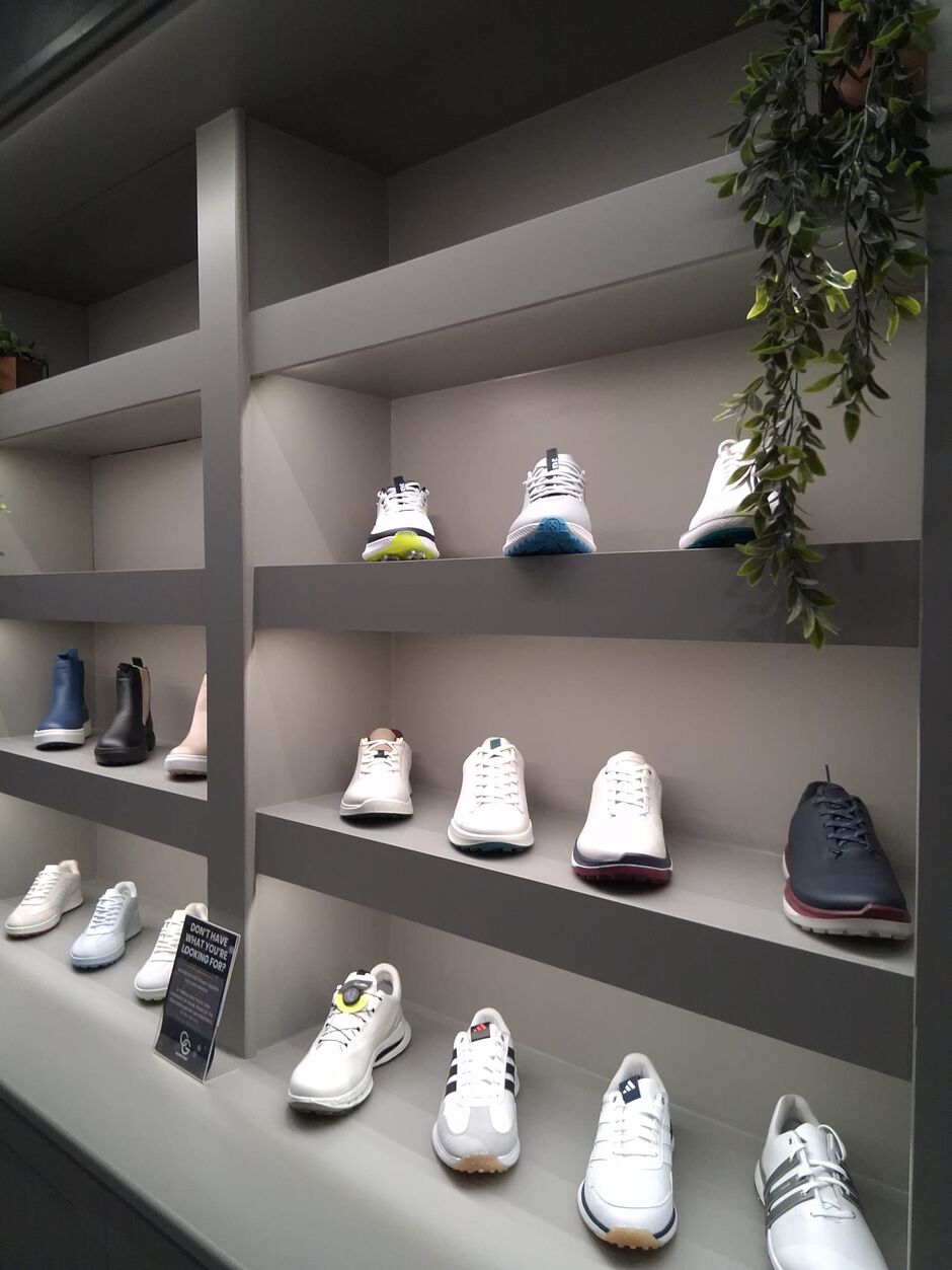 Our brand-new feature shoe wall showcases five leading golf footwear brands for both men and ladies, giving you plenty of choice when it comes choosing your next footwear for the course.
